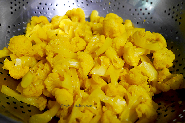 4. Drain the cauliflower completely and spread them on a clean cloth or kitchen towels.